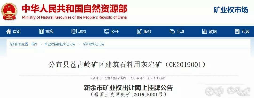 据了解,近期,江西分宜苍古岭矿区建筑石料用灰岩矿年产500万吨砂石矿权出让,砂石矿权年限达50年!