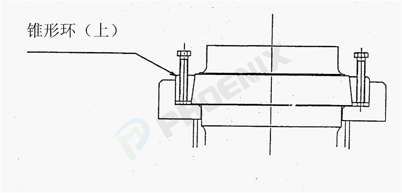 步骤5:对上锥套(上)的螺栓进行类似的工作取下所有的锥套(上)螺栓,然后将它们存放在干净的地方。锥套剖面图见下面图二:
